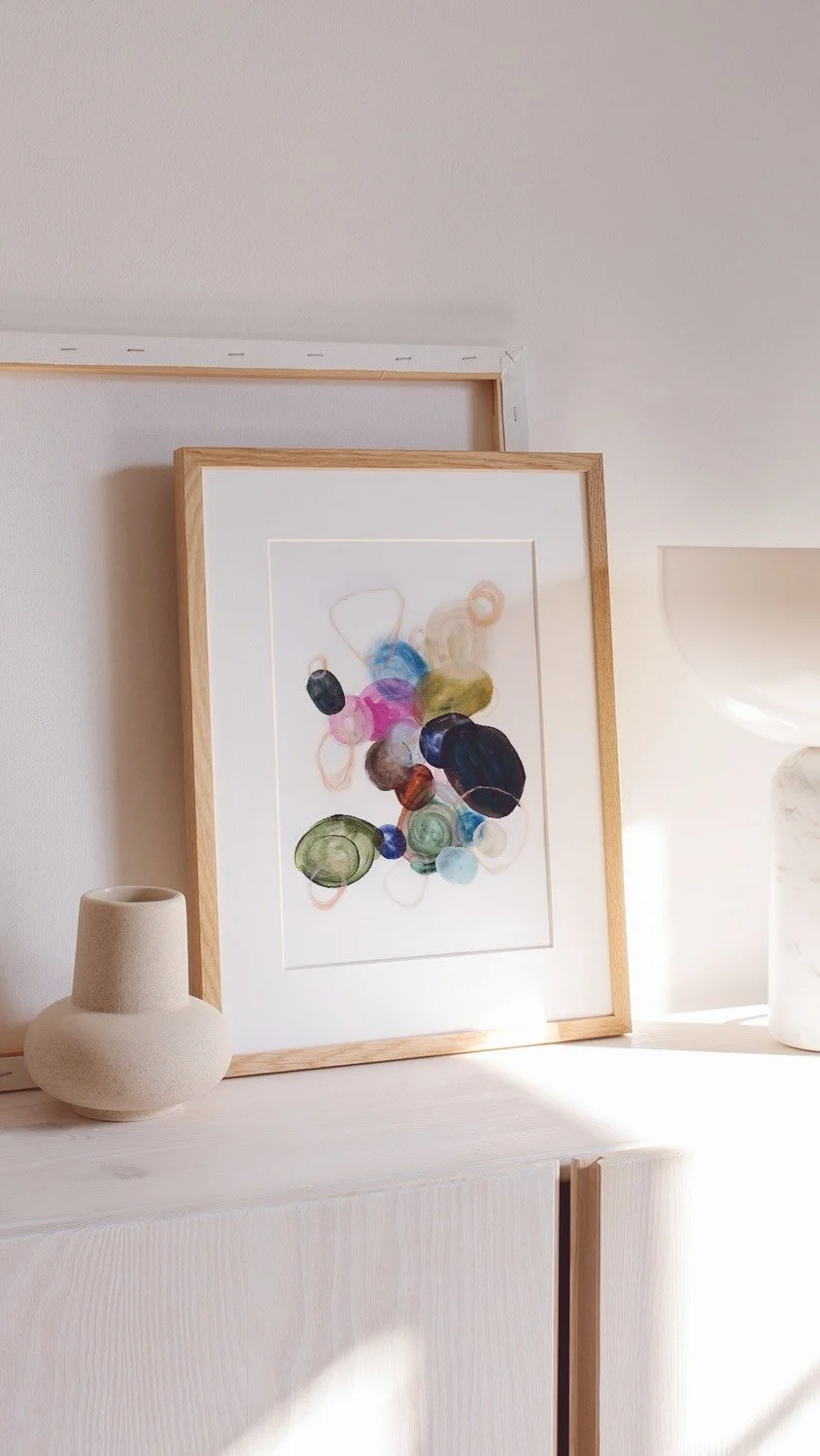 I prefer to leave framing up to the client, for their own creative expression. Original artworks, both works on paper and works on canvas are sold unframed. HOWEVER, if you see a piece that you love and would like a mockup created with your framing ideas I’d be so happy to do that for you. Both fine art prints and canvas prints have multiple framing options available. See framed art prints and framed canvas prints to view those options.